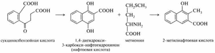 Багато клітини синтезують вітамін К і його похідні. Одним з попередників менахінон є сукцінілбензойная кислота:
