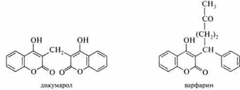 Підвищений згортання крові і утворення тромбів іноді є причиною важких захворювань серцево-судинної системи. Ряд хімічних сполук, які блокують процеси згортання крові, називають антагоністами вітаміну К і використовують в якості лікарських речовин. До цих речовин відносяться дикумарол і варфарин: