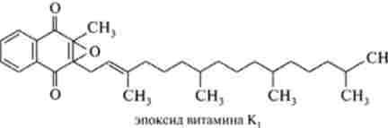 Вітамін До є одним з регуляторів системи згортання крові. Одним з етапів многостадийного процесу формування тромбу є утворення білка протромбіну, який потім перетворюється в тромбін. Механізм цього перетворення залежить від здатності протромбіну зв'язувати іони Са2+ за допомогою залишків у-карбокси і глутамінової кислоти. Карбок- сілірованіе останньої в складі білка здійснюється микросомальной кар- боксілазой, коферментом якої є 2,3-епоксид - окислена форма вітаміну К. Окислення протікає за рахунок впровадження кисню в положення 2,3-нафтохінону.