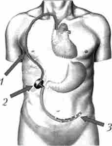 До моменту надходження в стаціонар у 30-40% хворих піщеводножелудочние кровотечі самостійно зупиняються. У таких випадках нерідко вдається побачити дефект слизової оболонки над варикозної веною, закритий фібрин пробкою або згустком крові. Подібна картина вказує на вкрай високий ризик рецидиву кровотечі, тому для досягнення остаточного гемостазу і профілактики рецидиву геморагії рекомендується застосувати одну з ендоскопічних методик: склеро- терапію або лігування варикозно-розширених вен стравоходу. При неможливості або неефективності ендоскопічного лікування зупинку кровотечі виробляють за допомогою зонда-обтуратора Сенгстакена - Блейкмора (рис. 17.7).