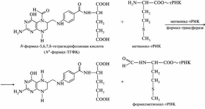 Наприклад, при біосинтезі метіоніну ТГФК в комплексі з відповідним апоферментом переносить метильную групу, при біосинтезі серина з гліцину - оксімстілитую групу, при біосинтезі пуринових підстав - формільную. Перенесення формільной групи при утворенні формілметіо- Ніл-тРНК є необхідною умовою ініціації синтезу білка.