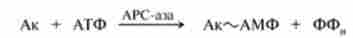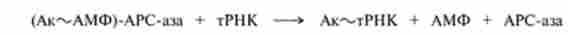 Аміноаціладенілат (Ак ~ АМФ) залишається в комплексі з АРС-азой до приєднання до другого активного центру ферменту тРНК. При взаємодії комплексу (Ак ^ АМФ) -АРС-аза з тРНК утворюється аміноацил-тРНК (Ак-тРНК); при цьому виділяється вільний фермент і АМФ:
