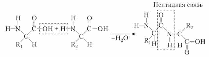 У будь-яких білках полімерна ланцюжок з амінокислот утворюється за рахунок формування зв'язків між аміногрупою однієї амінокислоти і карбоксильної групою іншої амінокислоти. Такий зв'язок називається пептидного.