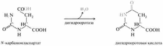 3. Під дією дігідрооротази відбувається циклізація / V-карбамоілас- партата і освіту дігідрооротовой кислоти: