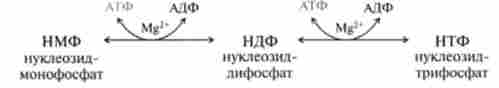 Фактичними попередниками для синтезу нуклеїнової кислоти служать нуклеозидтрифосфат, які утворюються з нуклсотідмонофосфатов (НМФ) в результаті двох послідовно протікають трансферазную реакцій:
