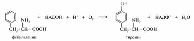 Тирозин, як зазначалося вище, утворюється з незамінної амінокислоти фенілаланіну шляхом її гидроксилирования під дією оксигенази (фе нілаланін-4-гілроксілаза) за рахунок прямого приєднання кисню: