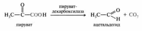 1. Декарбоксилирование пірувату під дією ферменту піруватдекар- боксілази, яка в якості коферменту містить тіамінпірофосфат і активується іонами магнію. Ця реакція повністю необоротна: