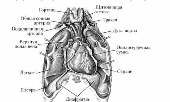 Мал. 9.2. Положення серця в грудній порожнині