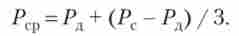 Середній артеріальний тиск (Рср), Яке становить рушійну силу кровотоку, не дорівнює середньому арифметичному систолічного і діастолічного тиску (оскільки значення артеріального тиску під час серцевого циклу більшу частину часу ближче до диастоличному), і розраховується за формулою