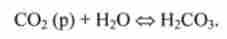 Згідно ланцюжку рівноваг зміст Н2СО3 визначається концентрацією розчиненого СОГ, яка, згідно із законом Генрі, пропорційна парціальному тиску СО2 в газовій фазі: