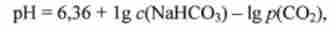 де 6,36 - негативний десятковий логарифм константи дисоціації вугільної кислоти рКа (Н2СО3) з поправкою на константу Генрі; р (СО2) - парціальний тиск СО2 в альвеолах легенів.