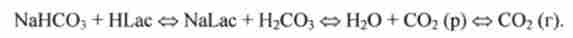 Внаслідок того що концентрація NaHC03 в крові значно перевищує концентрацію Н2СО3, буферна ємність цієї системи буде значно вище за кислоті. Інакше кажучи, водородкарбонатная буферна система особливо ефективно компенсує дію речовин, що збільшують кислотність крові. До числа таких речовин перш за все відносять молочну кислоту HLac, надлишок якої утворюється в результаті інтенсивного фізичного навантаження. Цей надлишок нейтралізується в наступному ланцюжку реакцій: