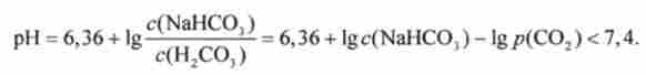 Відповідно до рівнянням Гендерсона-Гассельбаха типу (8.11) pH водень карбонатного буферного розчину визначається відношенням концентрації кислоти Н2СОз і солі NaHCCb:
