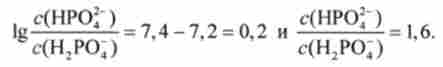 З рівняння Гендерсона-Гассельбаха для цієї буферної системи випливає, що в нормі при pH 7,4 ставлення концентрацій солі (НР04") І кислоти (Н2Р04) Становить приблизно 1,6. Це випливає з рівності
