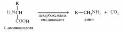 Серед різних типів декарбоксилирования амінокислот для організму людини і тварин найбільше значення має а-декарбоксілірованіс, т. Е. Відщеплення карбоксильної групи при а-вуглецевому атомі і утворення продуктів реакції амінів, що володіють, як правило, сильним фармакологічною дією і тому названих біогенними амінами.