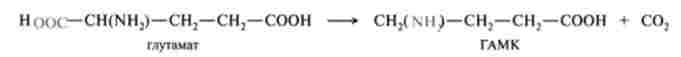 Важливу біологічну функцію виконує у-аміномасляна кислота (ГАМК) - продукт а-декарбоксилирования глутамінової кислоти. Фермент, що каталізує цю реакцію (глутаматдекарбоксилази), є високоспецифічний: