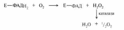- На другій стадії в аеробних умовах відбувається регенерація молекулярним киснем окисленого ФАД. Утворився при цьому пероксид водню ферментом каталізу розщеплюється на воду і кисень: