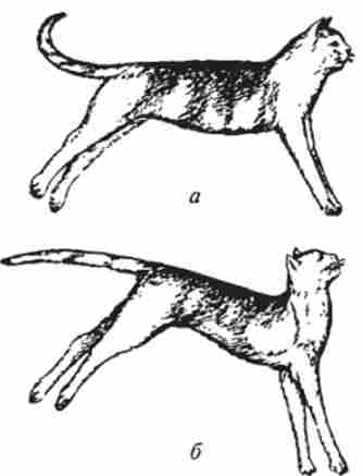Кінцівки такої тварини витягнуті, і зігнути їх можна лише з працею; шийні м'язи, що розгинають голову, напружені; хребет кілька вигнутий дугою догори.
