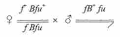 Механізм цього прояву пояснив А. Стертевант ще в 1925 р на основі генетичного аналізу. Ділянки зліва і праворуч від ваг були марковані тісно зчепленими мутаціями: / - forked (56,7); В - ваг (57,0); fu - fused (59,5). Цифри в дужках - точки локалізації (сМ). При схрещуванні: