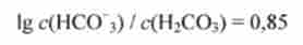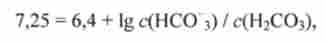 Так як pH всередині еритроцитів дорівнює 7,25, то співвідношення концентрацій солі (НСО'з) і кислоти (Н2СО3) тут дещо менше, ніж у плазмі крові. Дійсно. з рівняння Гендерсона-Гассельбаха для буферних систем I типу слід