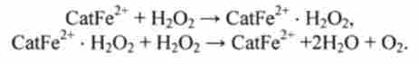 Дія каталази CatFe2* Може бути представлено у вигляді каталітичного циклу з двох послідовних реакцій: