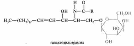 Галактозілцерамід є основним гліколіпідом мозкової і нервової тканин, містить різні жирні кислоти, в тому числі цереброновую (С24), Що є гідроксикислоти. В результаті сульфатирования галакто-
