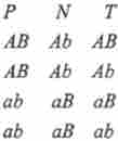 нехай гени А і В знаходяться в різних хромосомах. тетради Р і N можуть з'явитися, якщо в першому поділі мейозу збігається розщеплення