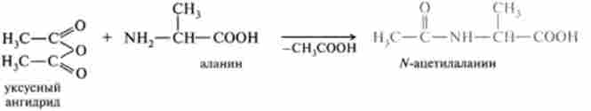 Ацетилювання амінокислот оцтовим ангідридом протікає в такий спосіб: