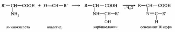Реакції аминогрупп з альдегідами призводять до утворення шіффово підстав. Реакція протікає за схемою: