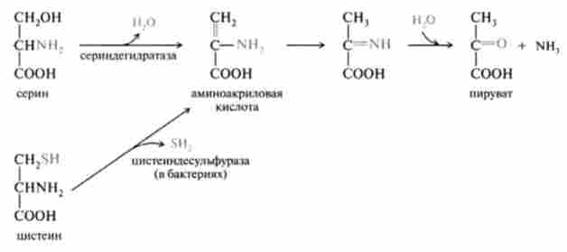 Нижче представлена схема перетворення серину і цистеїну в піруват: