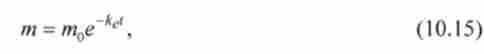 Очевидно, що з математичної точки зору цей вислів зовсім ідентично закону першого порядку (10.4). Різниця полягає в тому. що залежить від часу змінної тут є маса т ліки в організмі, а не концентрація реагенту і замість константи швидкості реакції до використовується константа елімінації (виведення) цих ліків з організму доз. Отже, рівняння кінетики виведення препарату аналогічно рівнянню кінетики реакції першого порядку (10.5):
