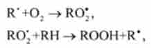 де R * - органічний радикал, утворений в окисно-відновних метаболічнихреакціях липида RH; RO *, - пероксидні радикал; ROOH - органічний пероксид. Радикал R, утворений в другій стадії, знову вступає в першу стадію і т. Д. Ці дві стадії є ланкою ланцюга реакцій.