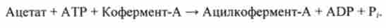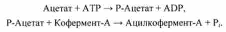 По механізму, описуваного реакціями (I) і (II), здійснюється ацилирование коферменту-А. Якщо в реакціях (I) і (II) ввести позначення: А - ацетат, А | - АТР, X - Р-ацетат, Di - неорганічний фосфат Р "В - кофермент-А, С - ацілко- фермент-А, С | - ADP, отримують добре відомі реакції (див. Розд. 5.1):