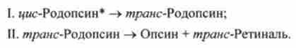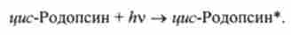 При потраплянні світла на сітківку i / wc-родопсин поглинає квант світла І і переходить в збуджений стан: