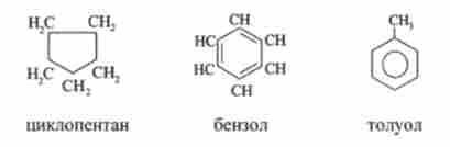 Вуглеводні з замкнутим ланцюгом утворюють клас циклічних вуглеводнів. Прикладом можуть служити