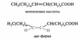 Отже, всі природні ненасичені кислоти є неспряженість і можуть бути зображені загальною формулою
