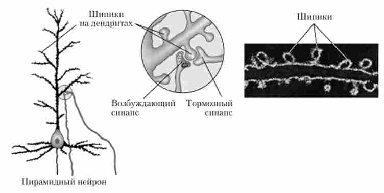 новонародженого дитинчати знижується число шипиків на дендритах пірамідних клітин в глибоких шарах зорової кори. Це викликано дегенерацією вже утворилися і неможливістю формування нових шипиків при відсутності стимуляції. Про те ж свідчать і результати, отримані на двох групах молодих тварин, одна з яких вирощувалася в сенсорно збагаченої, а інша - в сенсорно збідненого середовищі (тварини містилися в порожніх клітинах). У перших кора великих півкуль виявилася товщі, з великим числом синапсів. Аналогічні зміни числа дендритів і шипиків описані у дітей при неврологічних та інших захворюваннях, наприклад при хворобі Дауна.