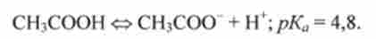 Зменшення концентрації аніонів СН3СОО врівноважується підвищенням концентрації молекул СН3СООН. В результаті відбувається невелика зміна в співвідношенні концентрацій слабкої кислоти і її солі, а отже, і незначно змінюється pH.