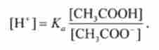 У присутності другого компонента буферного розчину - сильного електроліту CbbCOONa - кислотно-основну рівновагу оцтової кислоти СНзСООН зрушено вліво (принцип Ле Шательє). Тому концентрація недіссоціірован- них молекул СНзСООН практично дорівнює концентрації кислоти, а іонів СН3СОО - концентрації солі. У такому випадку рівняння для концентрації Н+ приймає наступний вигляд: