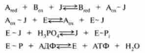 де А і В - переносники електронів в дихальної ланцюга; Е - фермент фосфорилювання.