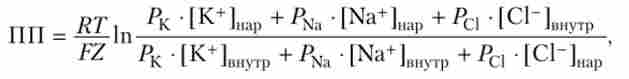де Р - проникність мембрани для відповідних іонів.