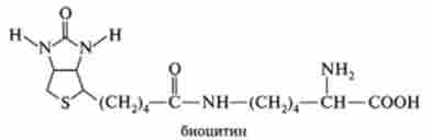 Біохімічна роль біотину в основному проявляється в складі біотіно- вих ферментів - карбоксилаз. Біотин спочатку зв'язується з е-амі- ногруппой амінокислоти лізину, при цьому утворюється біоцітін - кофер- ментной форма вітаміну Н: