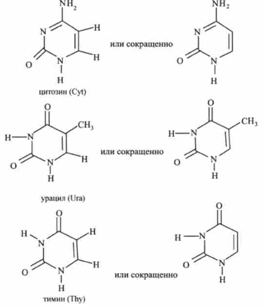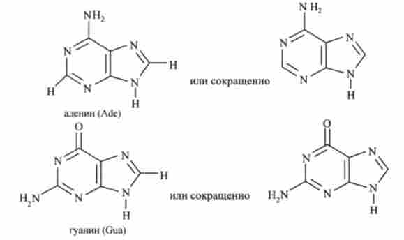 Азотисті основи, що входять до складу ДНК і РНК. діляться на два класи гомологів, похідних піримідину і пурину. Для позначення підстав прийняті скорочення: аденін - Ade, гуанін - Gua, тимін - Thy, цитозин - Cyt (більш стисло A, G, Т, С, або А, Г, Т, Ц відповідно).