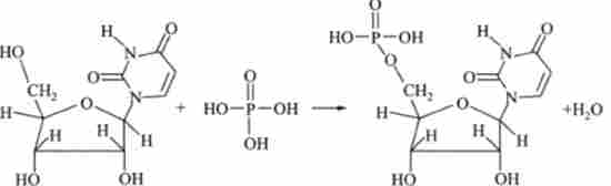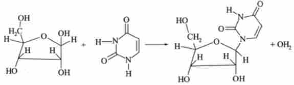Реакції етерифікації підстав і рибози йдуть з образваніем відповідних нуклеозидов. Реакція етерифікації урацила і рибози дає нуклеозид уридин: