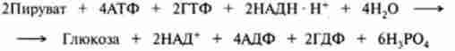 Стехіометрична реакцію синтезу молекули глюкози в процесі глю- консогснеза можна записати в такий спосіб: