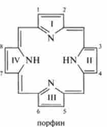 Родоначальником ряду порфіринів можна вважати тетрапіррольних пор- Фірін, з якого отримують всі інші порфірини, заміщаючи водневі атоми в положеннях 1-8 різними радикалами, найчастіше метильной, етільной і винильной групами або залишком пропіонової кислоти.
