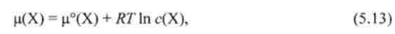 Якщо речовина X знаходиться в розчині, хімічний потенціал цієї речовини залежить від концентрації і природи розчинника. Аналіз експериментальних даних показує, що така залежність носить логарифмічний характер і має такий вигляд: