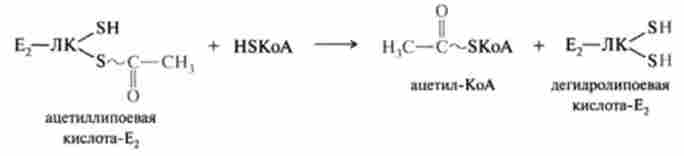 На третій стадії ДЛТА каталізує перенесення ацетильной групи на HS-KoA. Утворюється один з кінцевих продуктів ОДП-ацетил-КоА і відновлена форма ліпосвой кислоти - коферменту ДЛТА (Е2):
