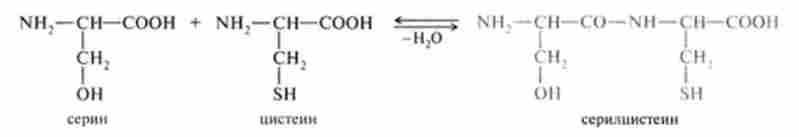 Якщо аминная група однієї амінокислоти з'єднується з карбоксильною групою іншої амінокислоти, то утворюється з'єднання називають дипептидом, а зв'язок між амінокислотами - пептидним зв'язком: