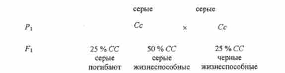 При схрещуванні сірих овець з сірими баранами 25% ягнят гинуть, не досягнувши статевої зрілості. Якщо ж схрещувати сірих овець з чорними баранами, то народиться 50 % сірих і 50% чорних ягнят, причому всі вони життєздатні.